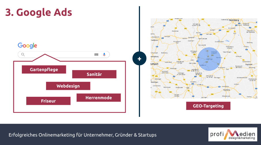Als letzten Punkt noch die bezahlten Anzeigen bei Google "Google Ads" als tolle Möglichkeit für jedes Unternehmen, dass eine Online-Präsenz besitzt.