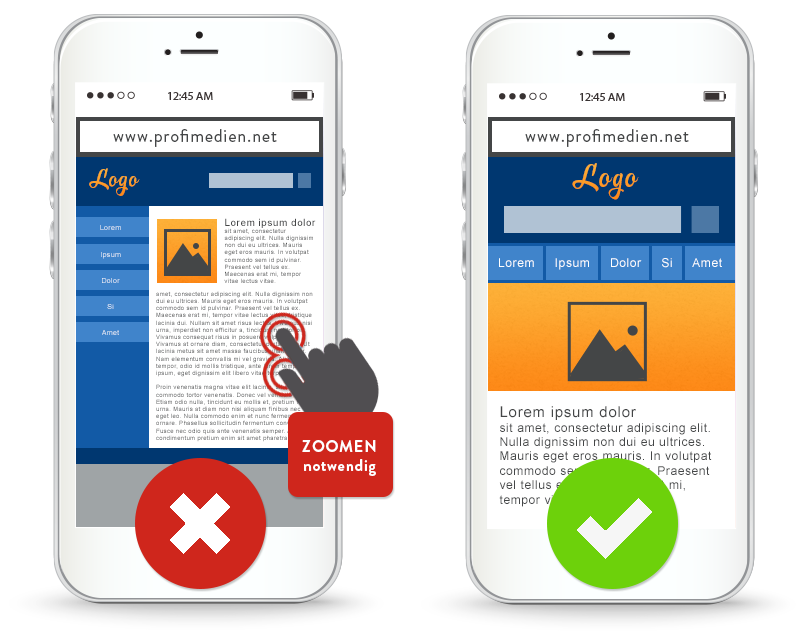 Deswegen muss die eigene Webseite unbedingt für mobile Geräte bereit sein und eine ordentliche Darstellung und Bedienbarkeit der Webseite gewährleisten.