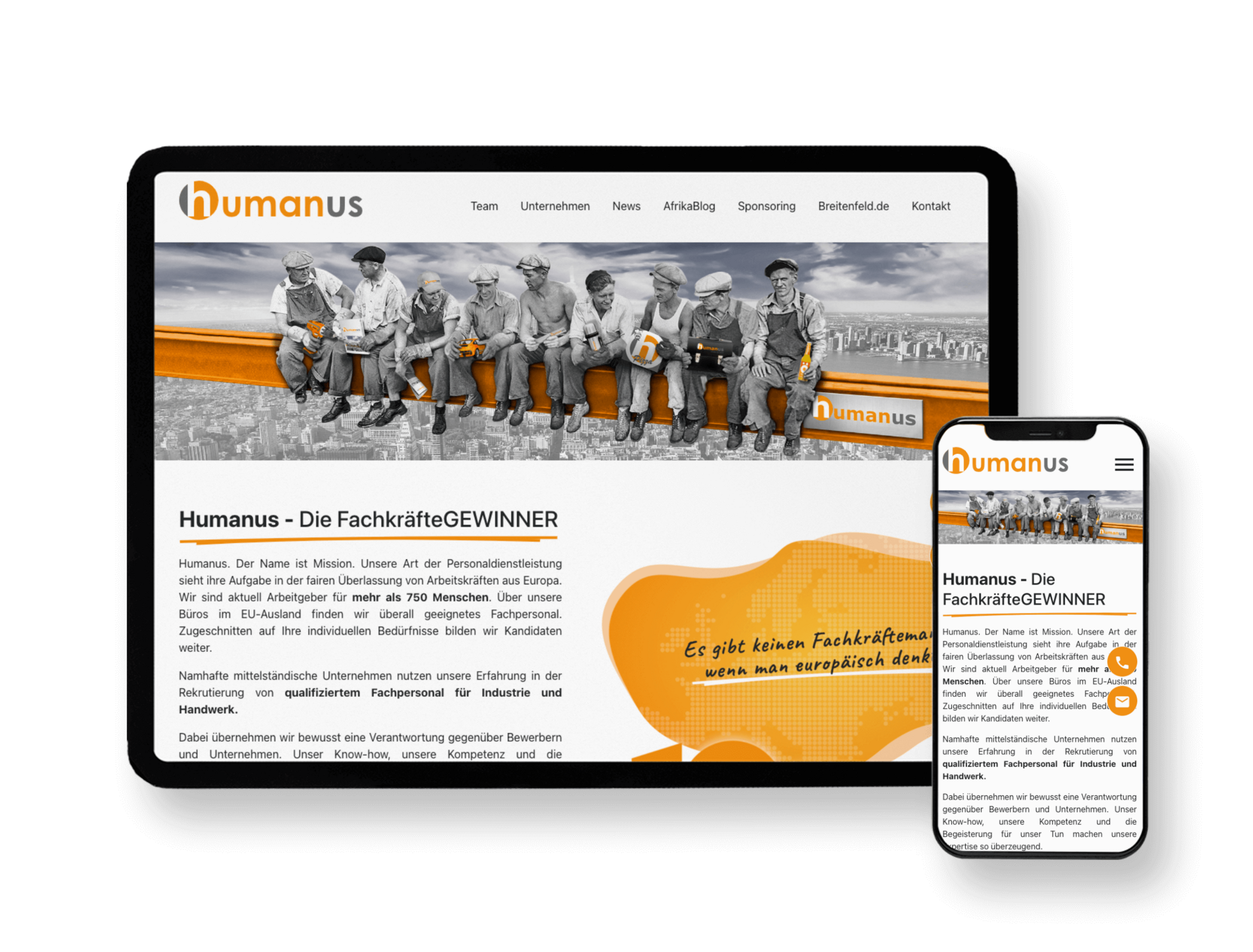 Umsetzung der neuen responsiven Seite der Humanus Personalservice GmbH aus Nördlingen.