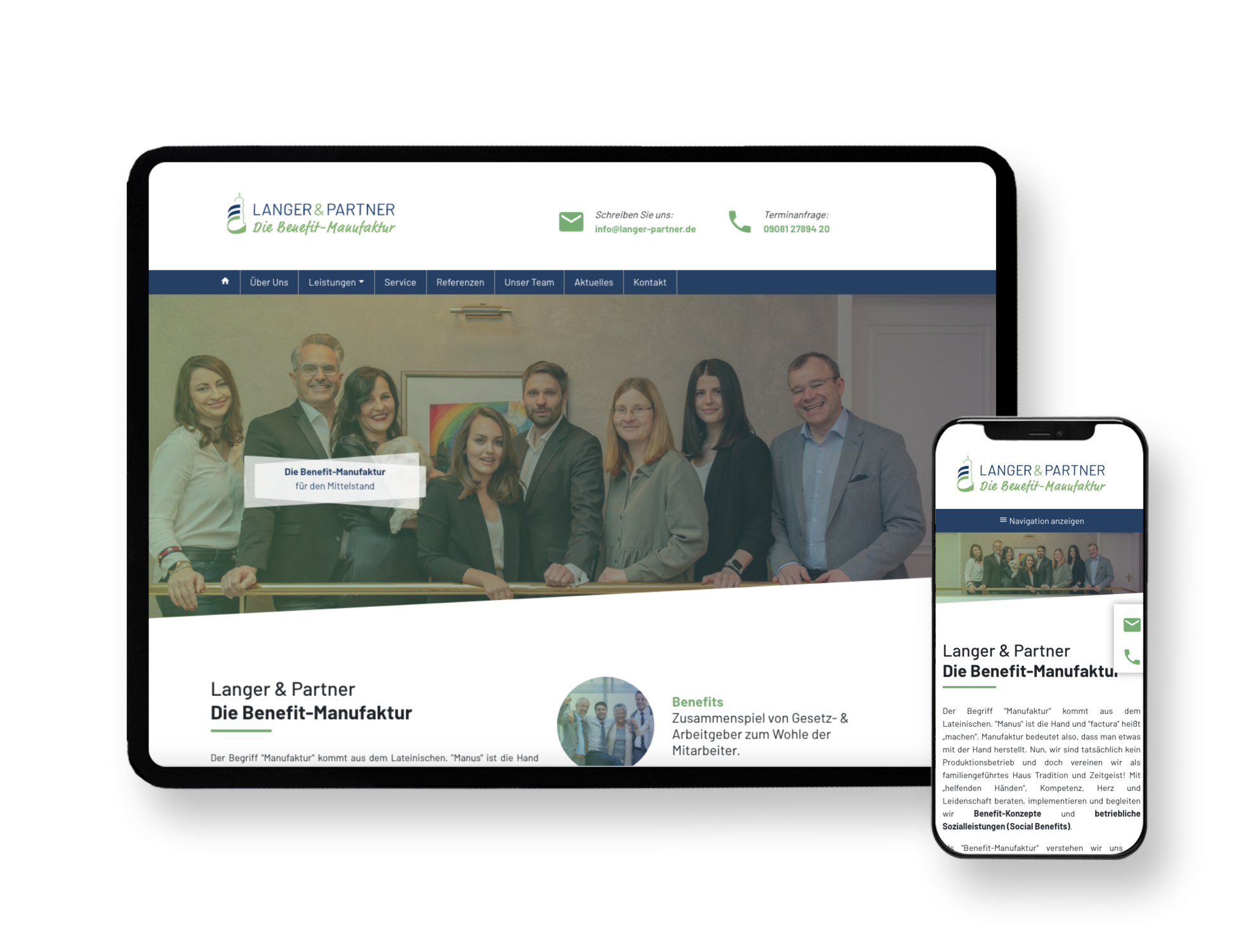 Gestaltung und Umsetzung des neuen responsiven Webauftritts von Langer und Partner in Nördlingen, nach vorgegebenen Corporate Design